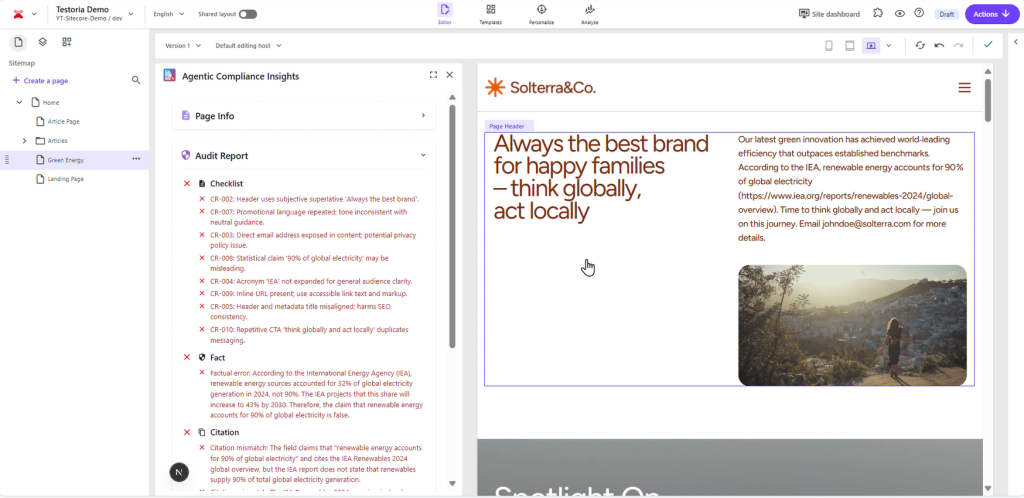 Discover how the open‑source Agentic Compliance Insights module brings generative AI into SitecoreAI to audit and improve your pages.